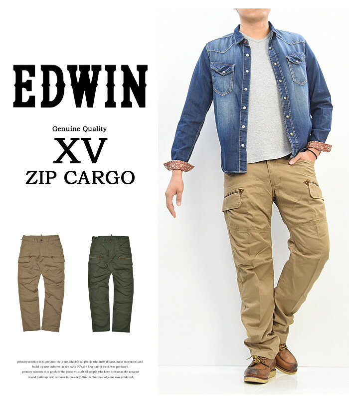 EDWIN(エドウィン) XY-ZIP 2WAY CARGO PANTS 程よい伸縮性、厚さのカラーストレッチ素材で仕上げた 使いやすいカーゴパンツが登場しました。