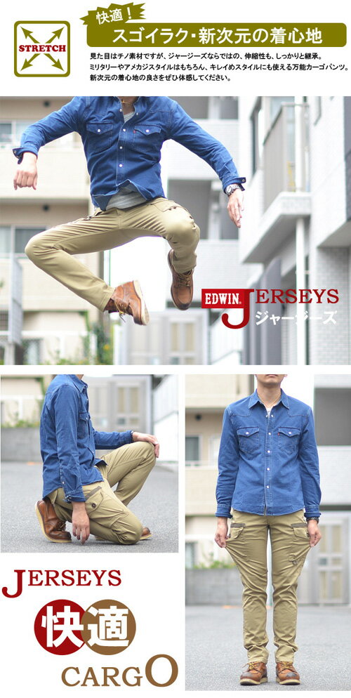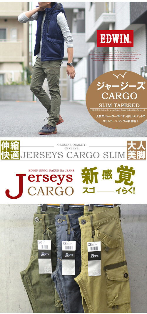 JERSEYS ジャージーズ スリムテーパード デザインカーゴパンツ ジーンズの見た目と、ジャージの着用感を併せ持った良いとこ 取りのラクラク快適パンツ「JERSEYS (ジャージーズ)」の 新商品「スリムテーパード・カーゴパンツ」が登場しました。