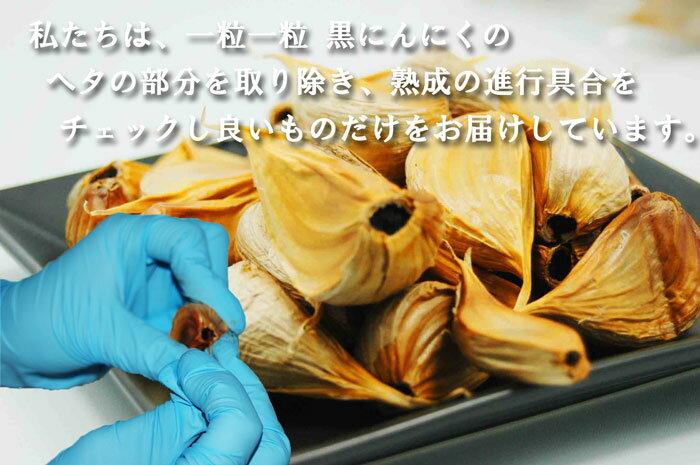 より品質のいいもの、また安定した商品をご提供出来る様に私達は、一粒一粒のニンニクのヘタの部分と取り除き、熟成の進行具合をチェックし良品のみを出荷しています。