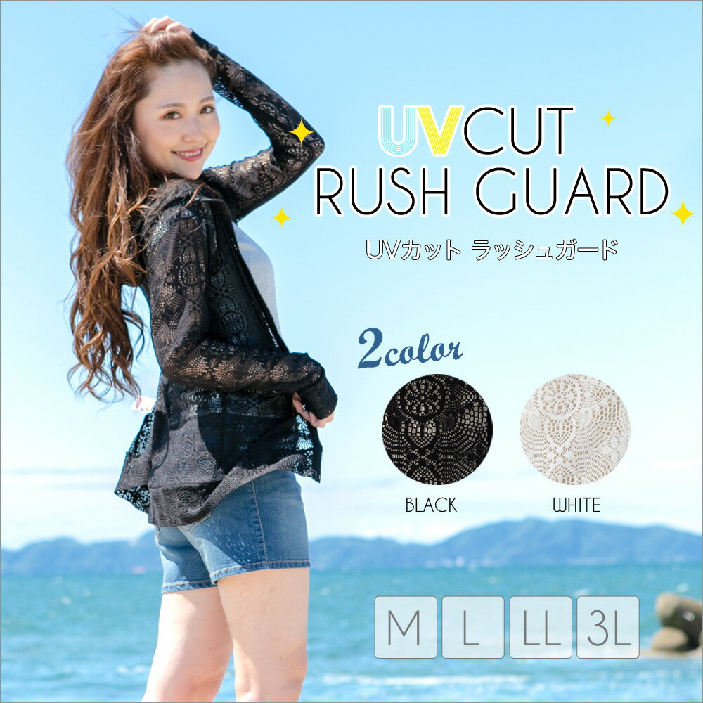 ラッシュガード レディース 長袖 UVカット大きいサイズ おしゃれ 遮光 熱中症対策【メール便送料無料】 パーカー 紫外線カット uv upf50 指穴 フード レディース アウター 羽織 柄 海 アームカバー 薄手 黒 白